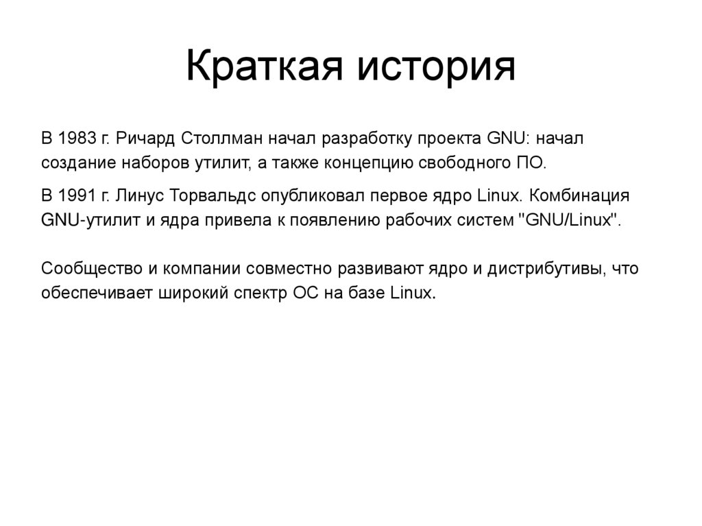 Краткая историяВ 1983 г. Ричард Столлман начал разработку проекта GNU: начал