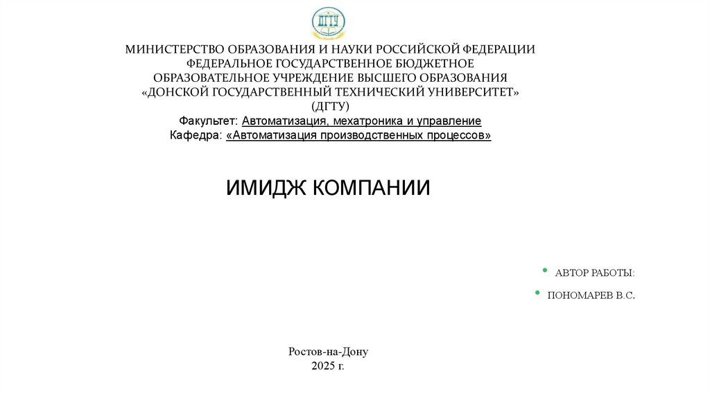 «ДОНСКОЙ ГОСУДАРСТВЕННЫЙ ТЕХНИЧЕСКИЙ УНИВЕРСИТЕТ»