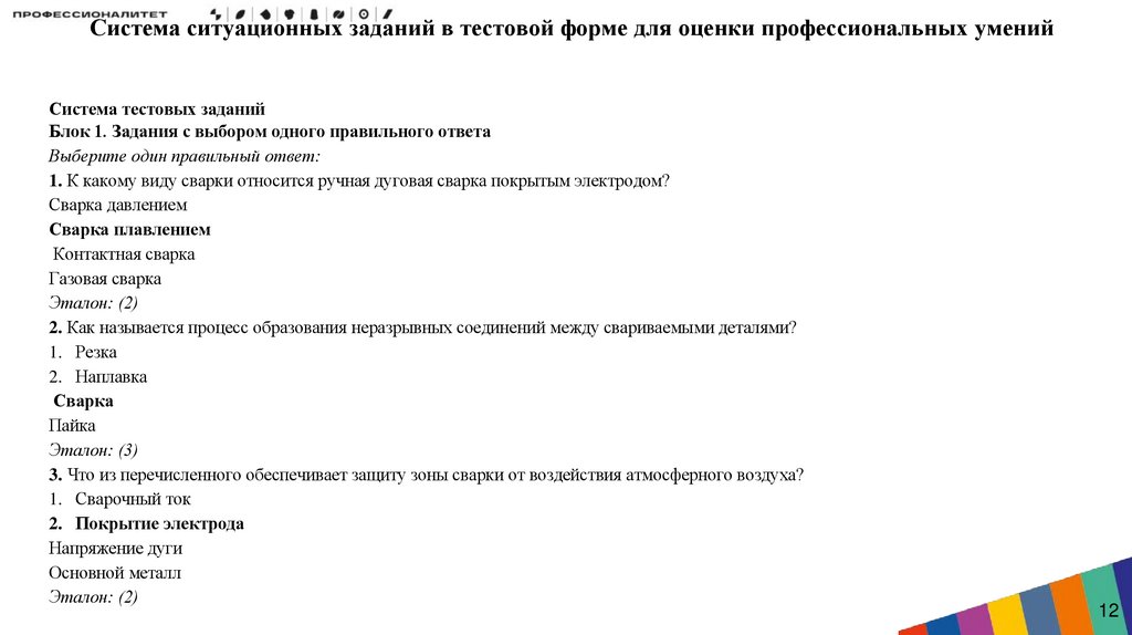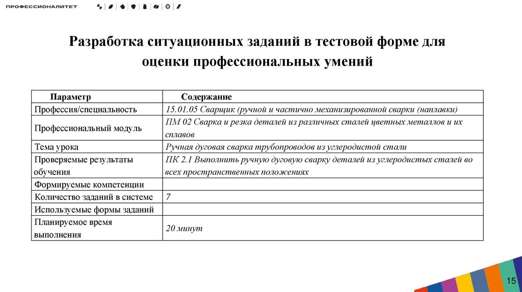 Разработка ситуационных заданий в тестовой форме дляоценки профессиональных умений