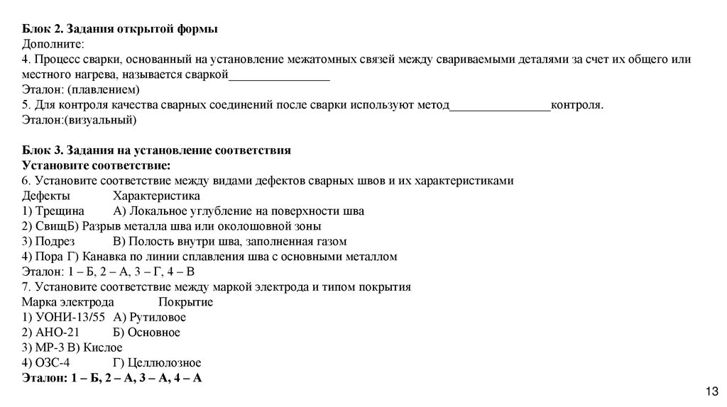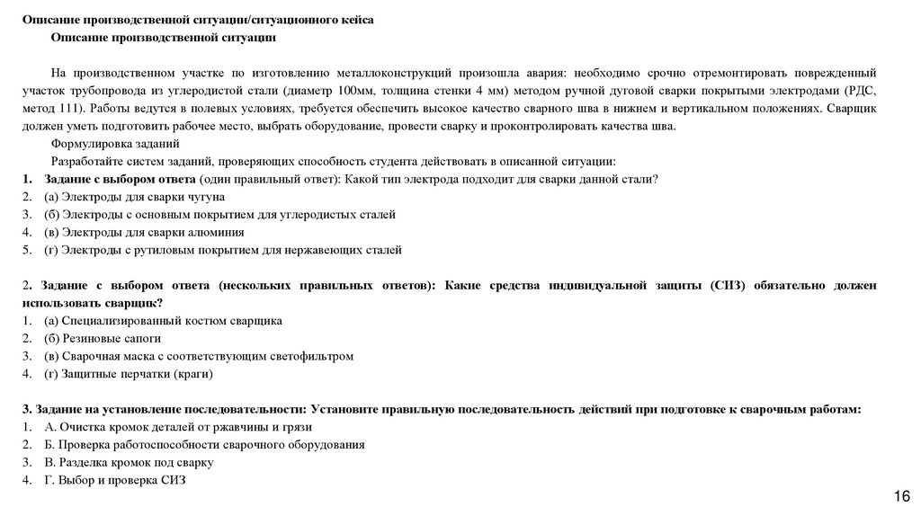 3. Задание на установление последовательности: Установите правильную последовательность действий при подготовке к сварочным работам: