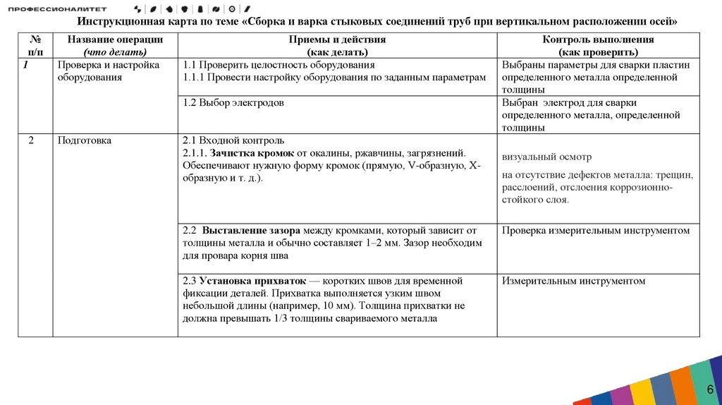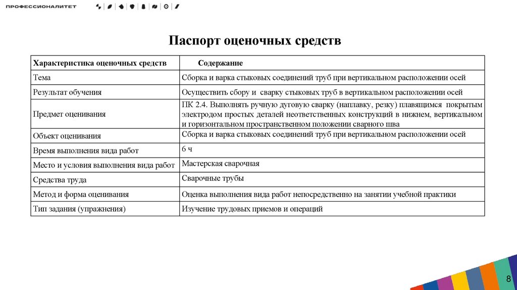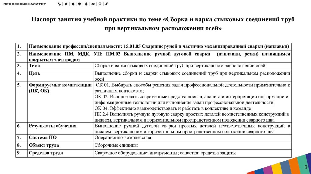 Паспорт занятия учебной практики по теме «Сборка и варка стыковых соединений трубпри вертикальном расположении осей»