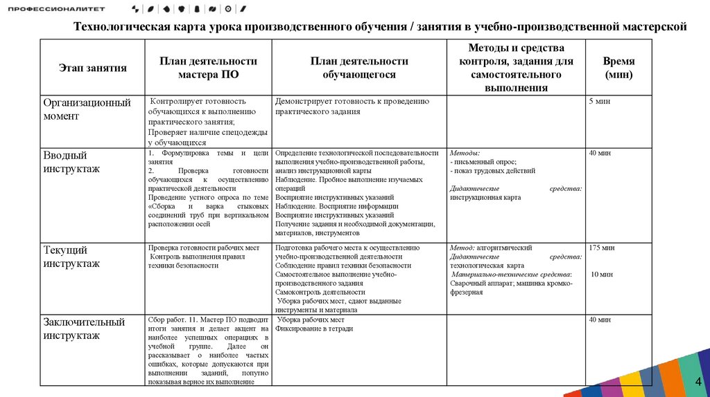 Технологическая карта урока производственного обучения / занятия в учебно-производственной мастерскойЭтап занятия