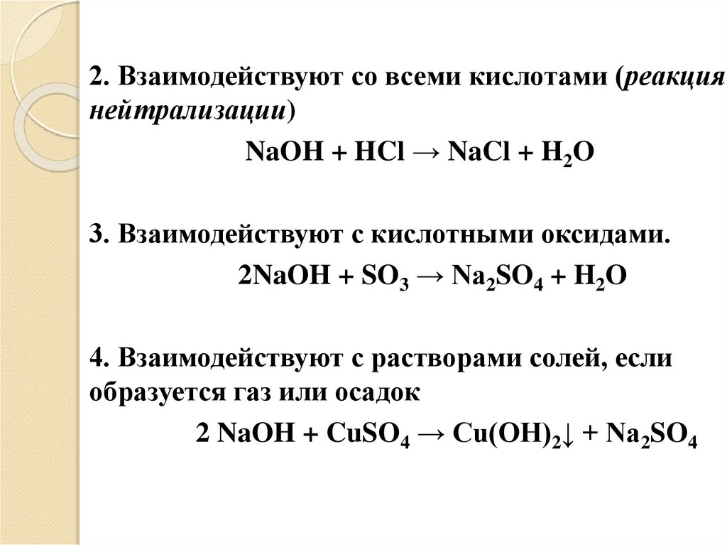 2. Взаимодействуют со всеми кислотами (реакциянейтрализации)