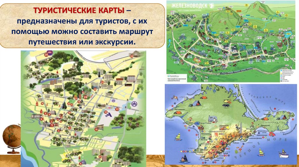 ТУРИСТИЧЕСКИЕ КАРТЫ –предназначены для туристов, с их