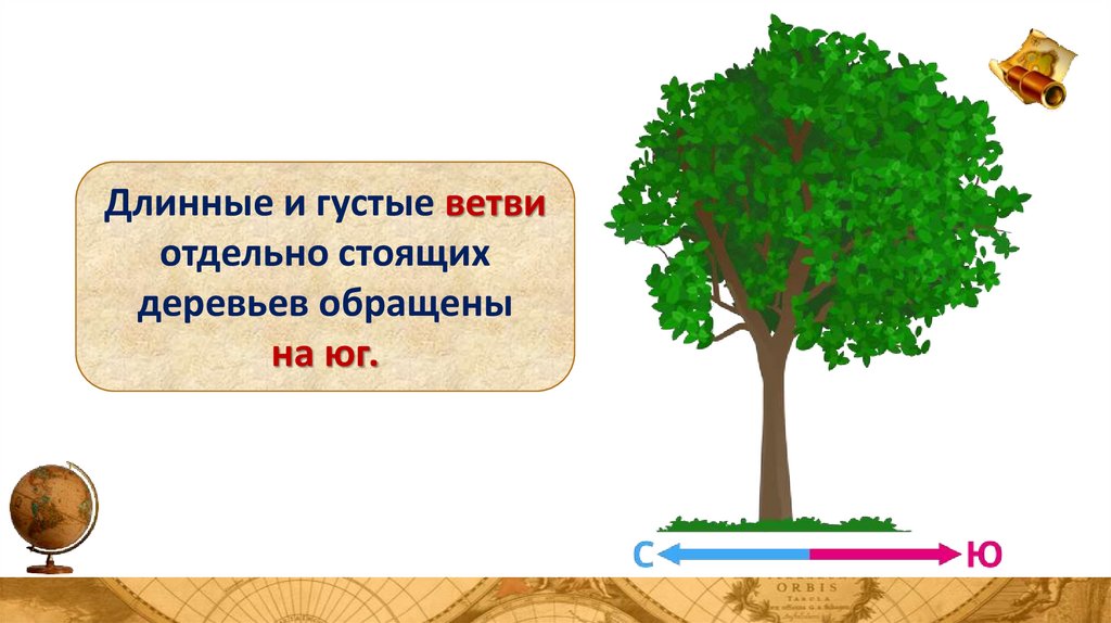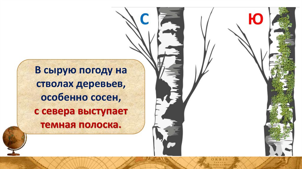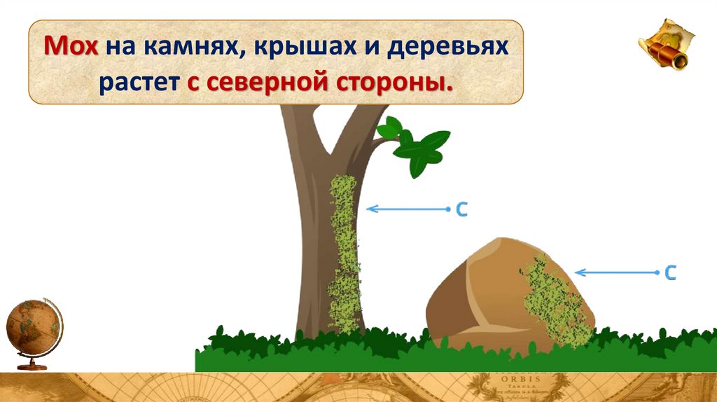 Мох на камнях, крышах и деревьяхрастет с северной стороны.