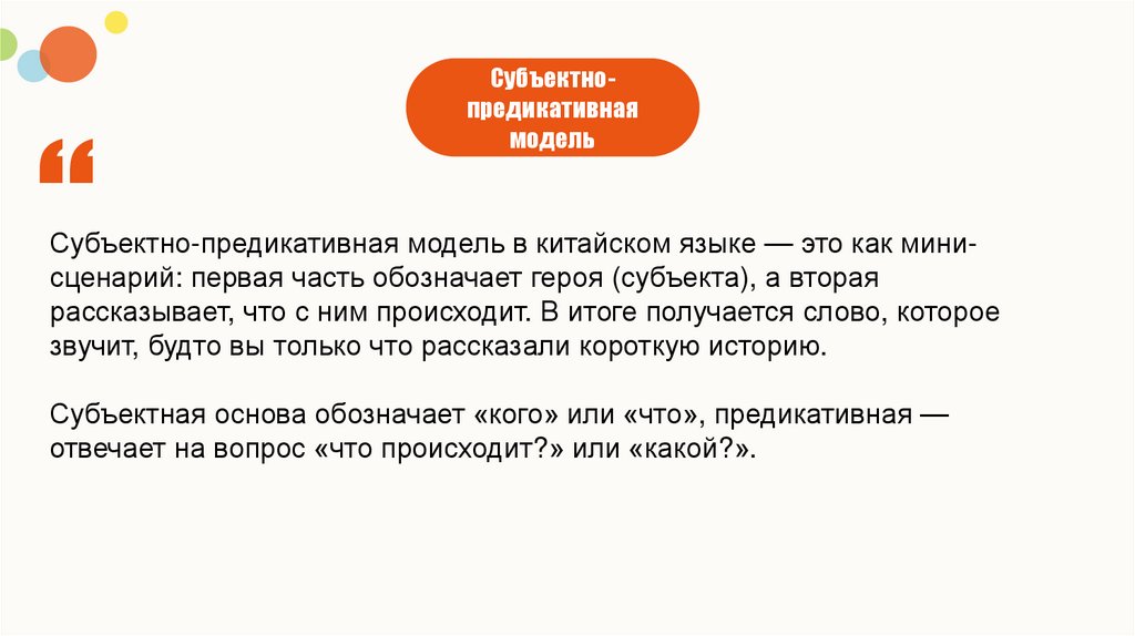 Субъектно-предикативная модель в китайском языке — это как минисценарий: первая часть обозначает героя (субъекта), а вторая