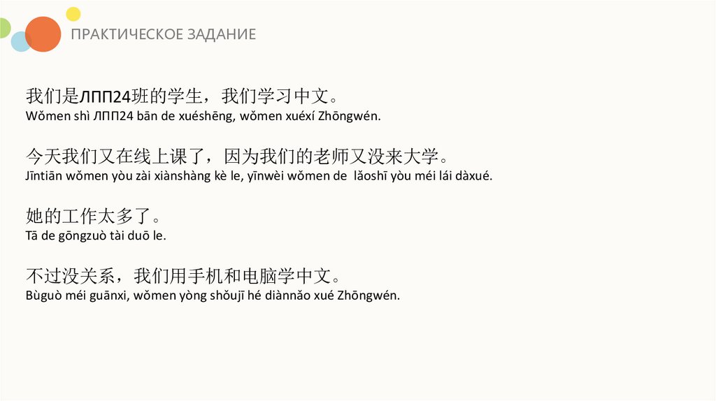 ПРАКТИЧЕСКОЕ ЗАДАНИЕ我们是ЛПП24班的学生 我们学习中文。