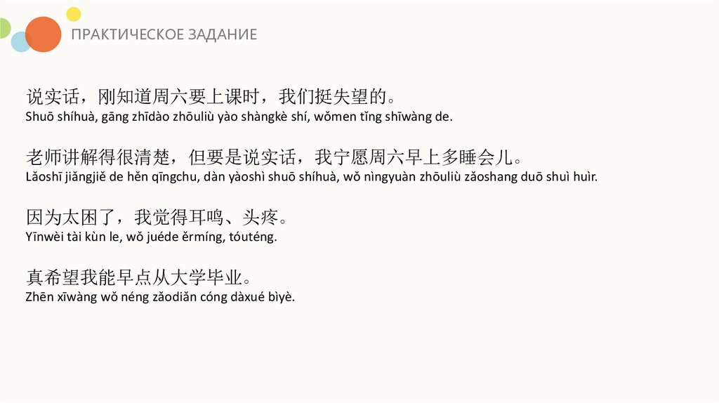 ПРАКТИЧЕСКОЕ ЗАДАНИЕ说实话 刚知道周六要上课时 我们挺失望的。