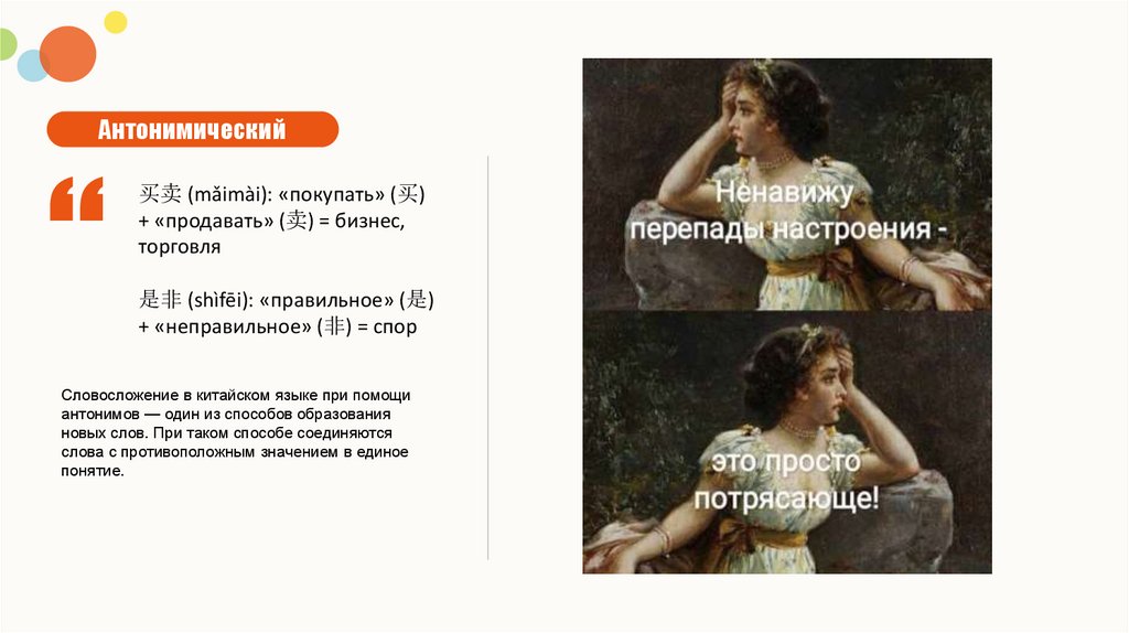 Антонимический买卖 (mǎimài): «покупать» (买)