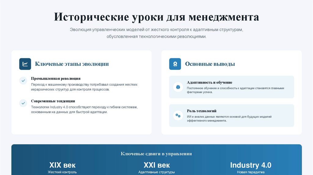 Исторические уроки для менеджментаЭволюция управленческих моделей от жесткого контроля к адаптивным структурам,