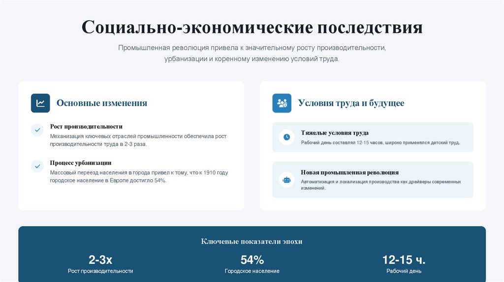 Социально-экономические последствияПромышленная революция привела к значительному росту производительности,