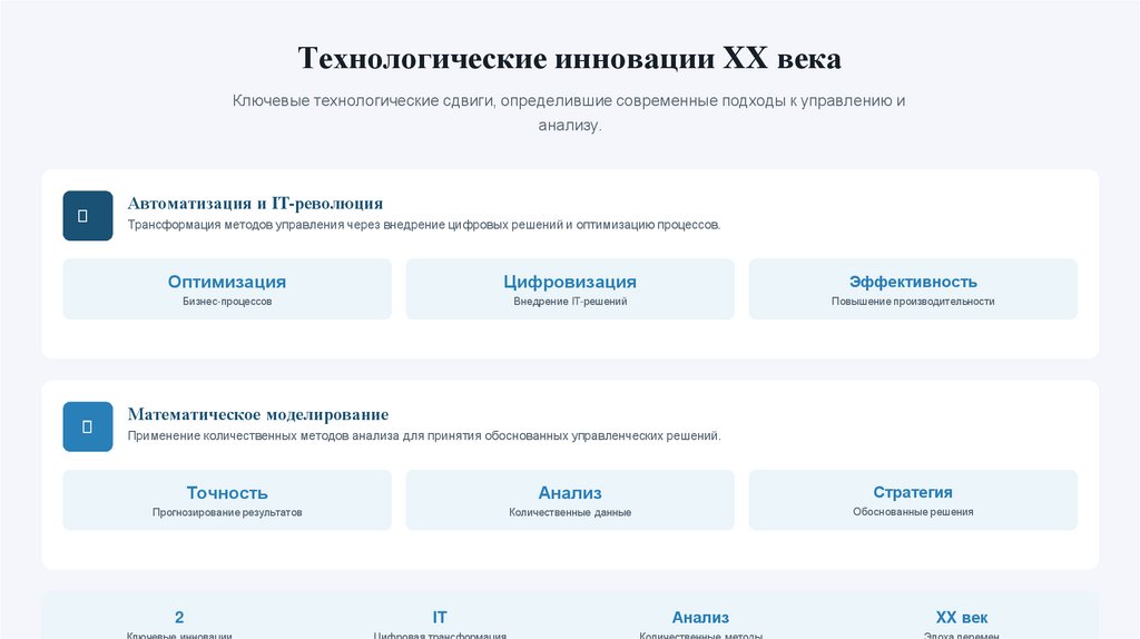 Технологические инновации XX векаКлючевые технологические сдвиги, определившие современные подходы к управлению и