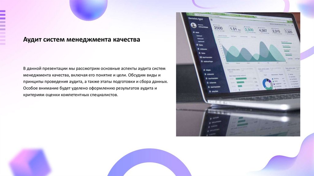 Аудит систем менеджмента качестваВ данной презентации мы рассмотрим основные аспекты аудита систем