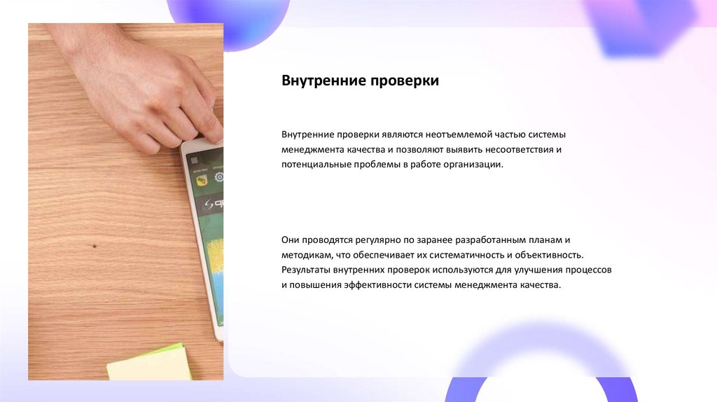 Внутренние проверкиВнутренние проверки являются неотъемлемой частью системы