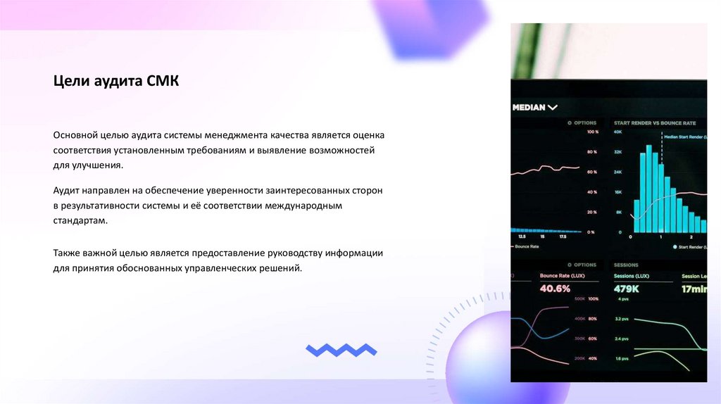 Цели аудита СМКОсновной целью аудита системы менеджмента качества является оценка