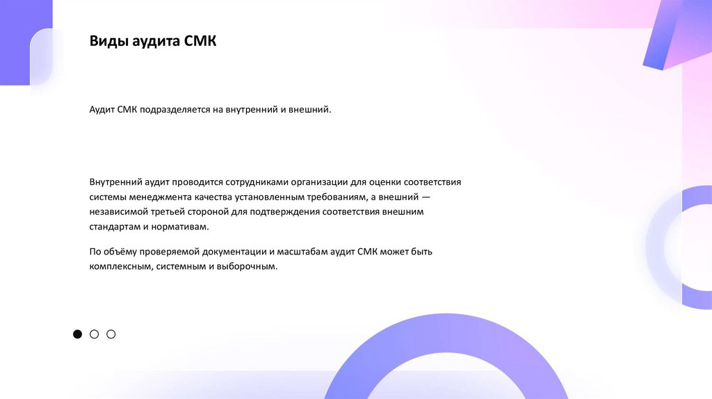 По объёму проверяемой документации и масштабам аудит СМК может быть