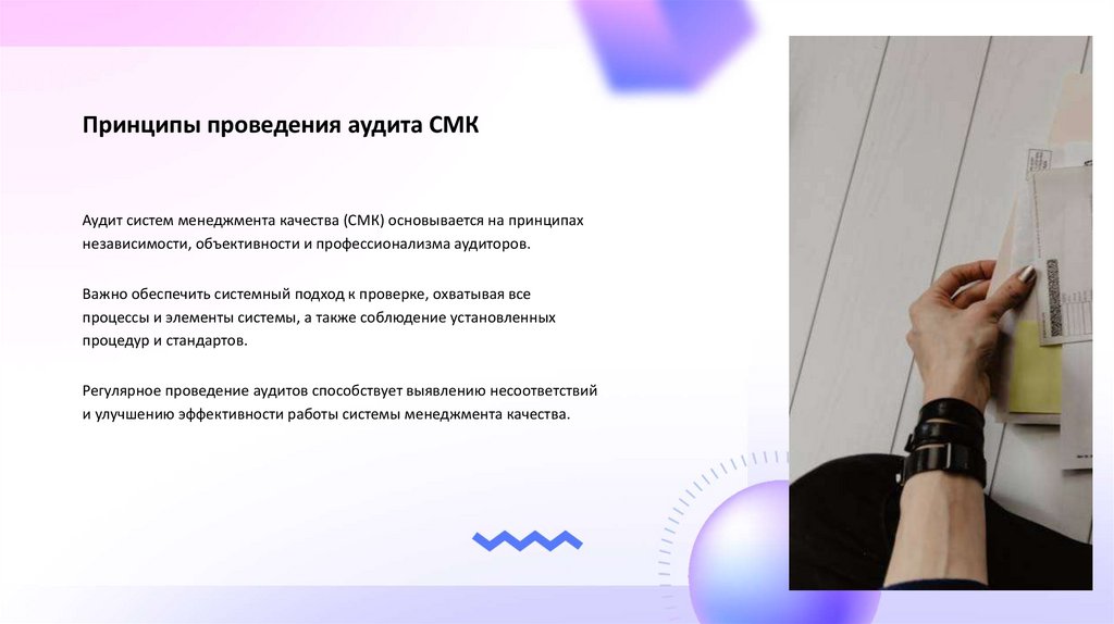 Принципы проведения аудита СМКАудит систем менеджмента качества (СМК) основывается на принципах