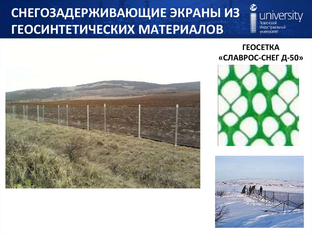 СНЕГОЗАДЕРЖИВАЮЩИЕ ЭКРАНЫ ИЗГЕОСИНТЕТИЧЕСКИХ МАТЕРИАЛОВ