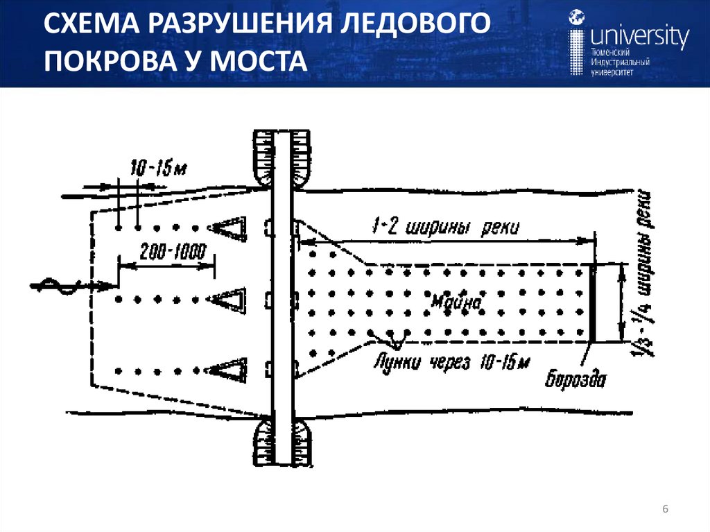СХЕМА РАЗРУШЕНИЯ ЛЕДОВОГОПОКРОВА У МОСТА