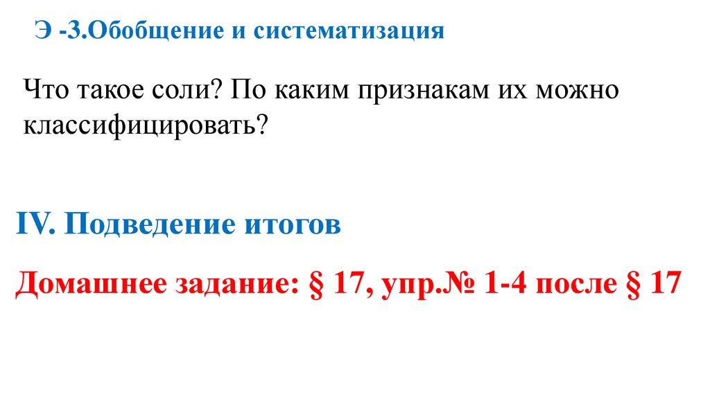 Э -3.Обобщение и систематизацияЧто такое соли? По каким признакам их можно