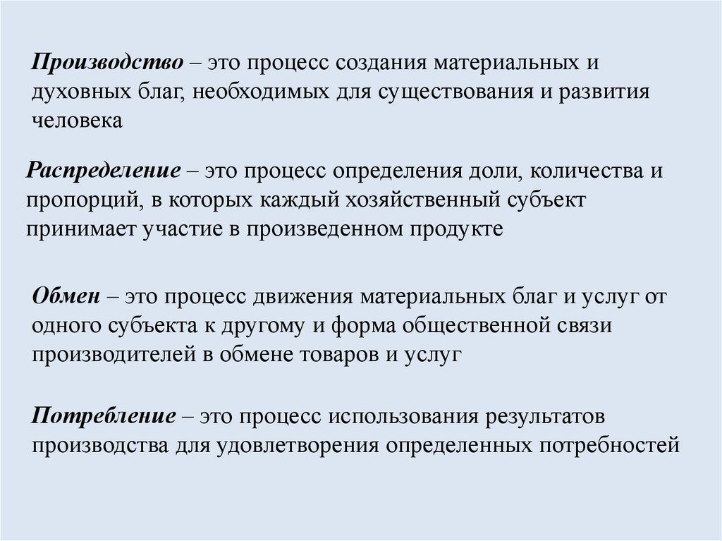 Производство – это процесс создания материальных идуховных благ, необходимых для существования и развития