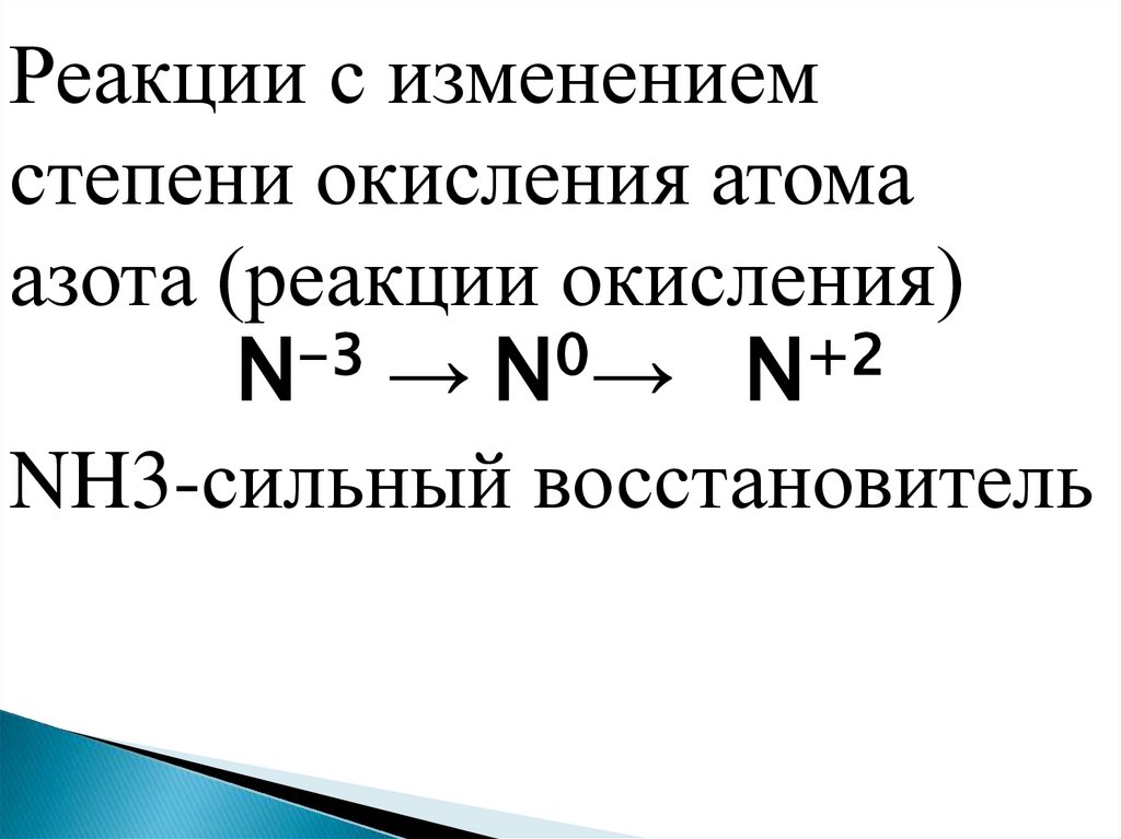 атома азота (реакции окисления);