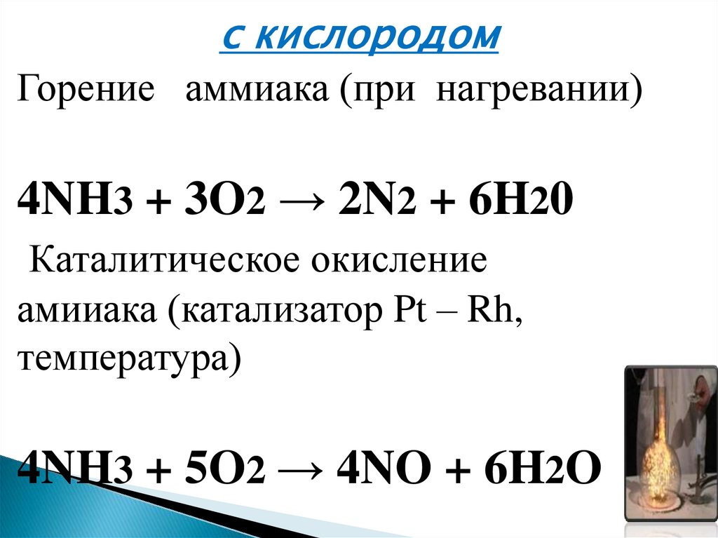 с кислородомГорение аммиака (при нагревании)