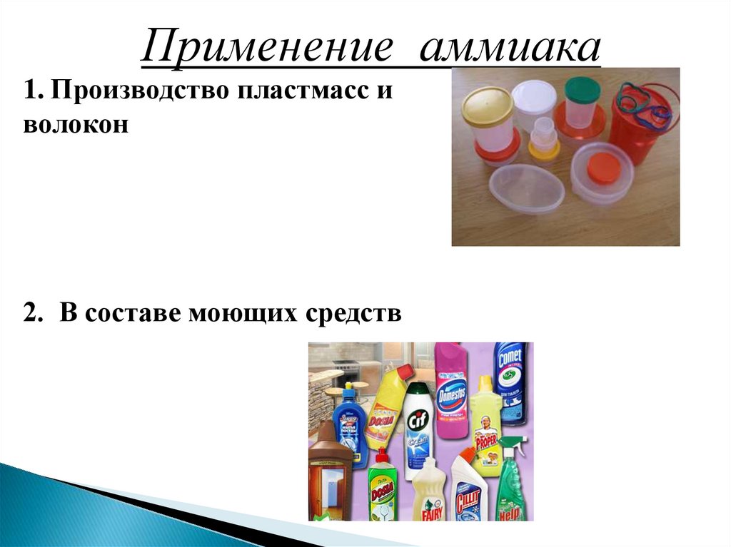 Применение аммиака1. Производство пластмасс и