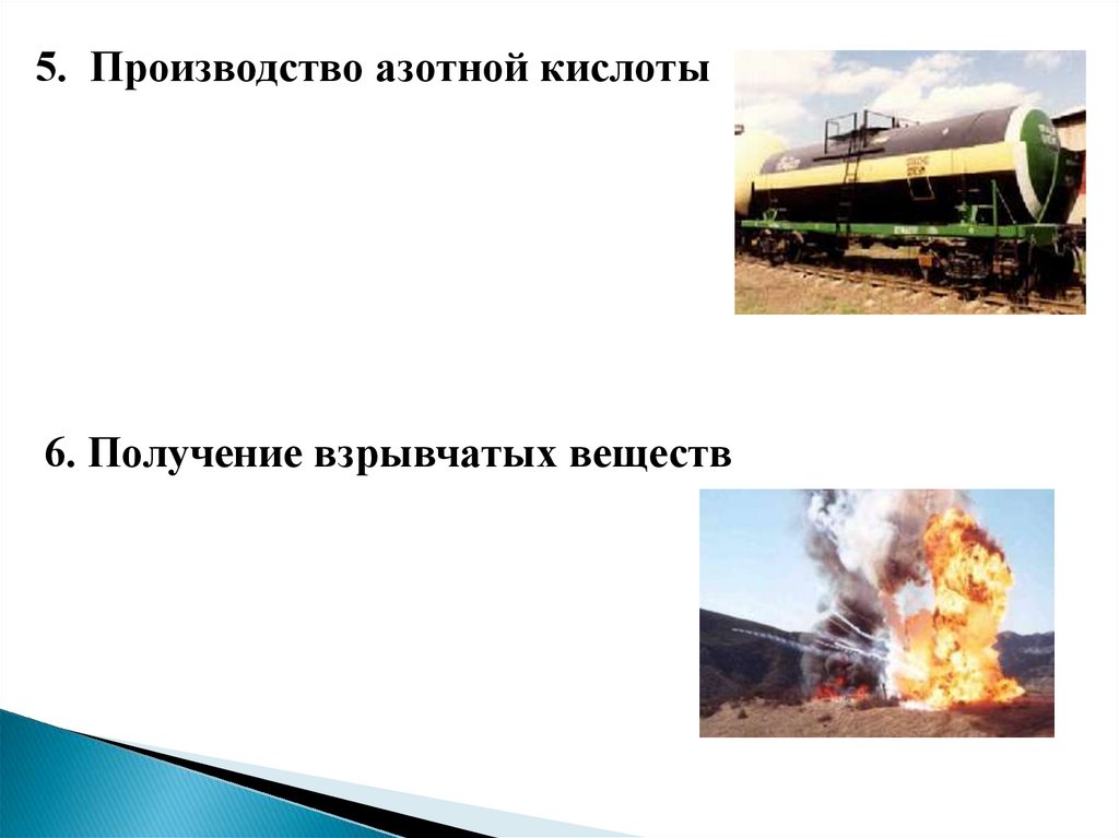 5. Производство азотной кислоты6. Получение взрывчатых веществ