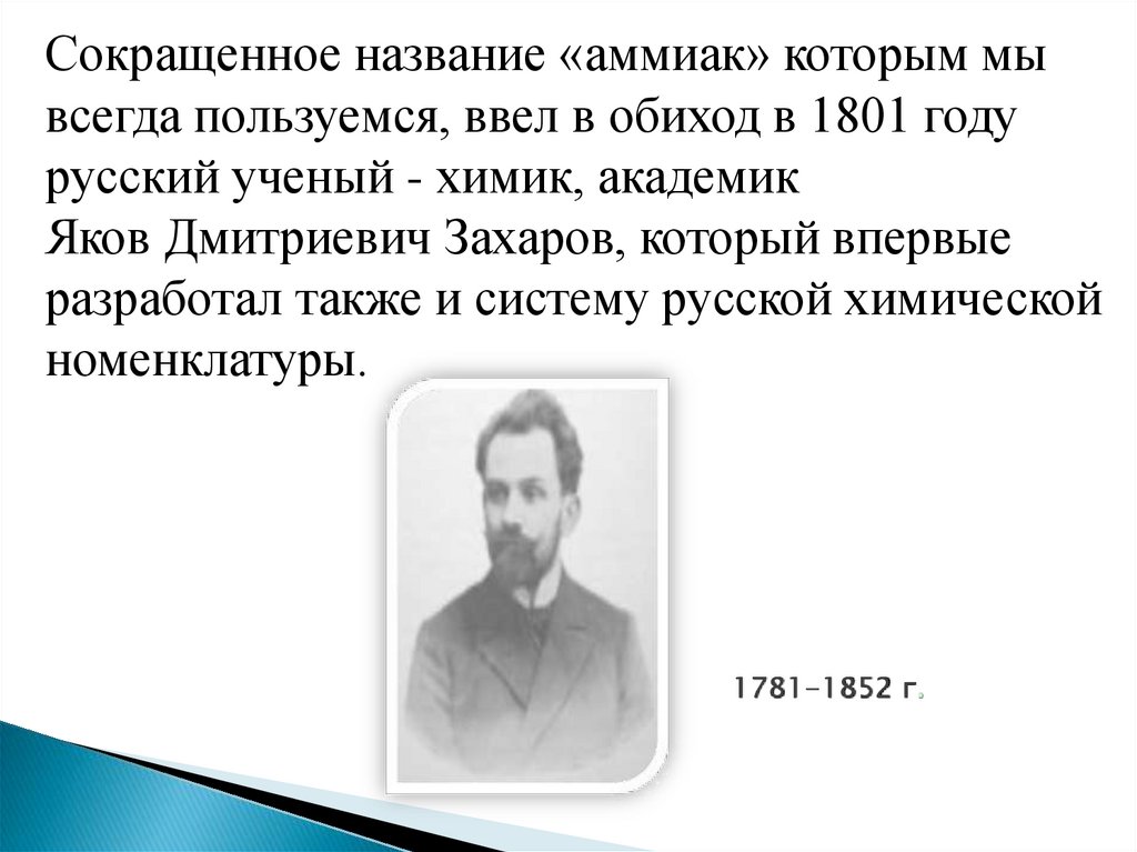 Сокращенное название «аммиак» которым мывсегда пользуемся, ввел в обиход в 1801 году