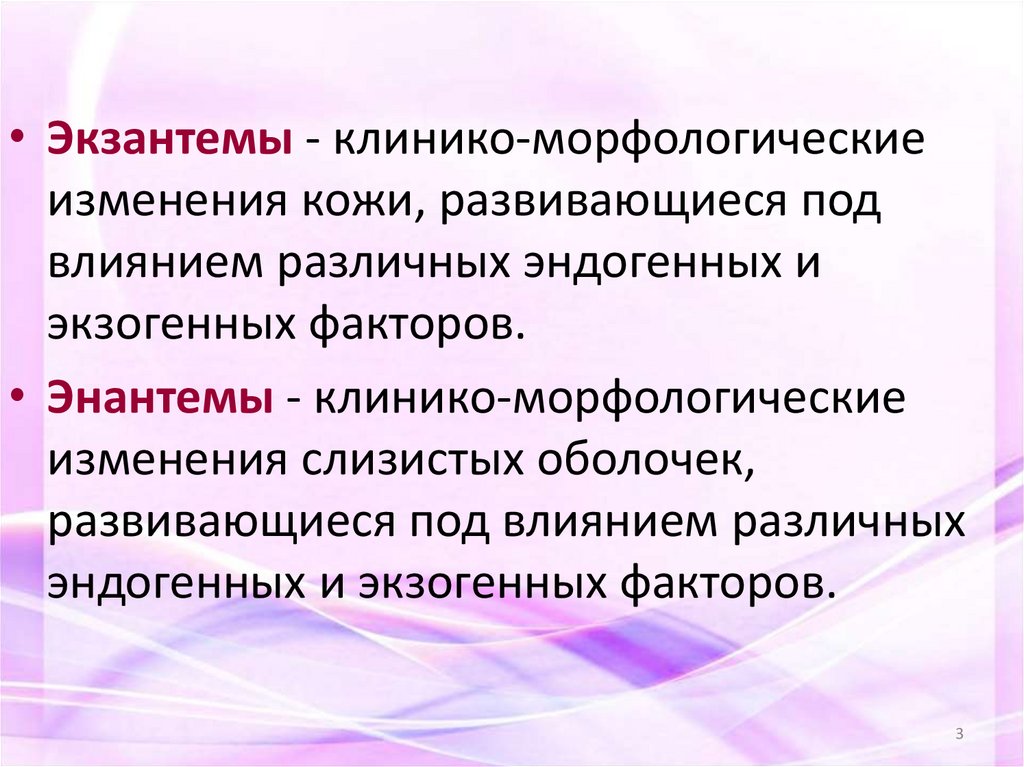 • Экзантемы - клинико-морфологическиеизменения кожи, развивающиеся под