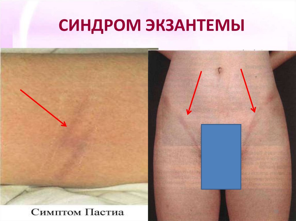 • полиморфизм (бывают пятнистопапулезными, точечными,везикулезными, уртикарными и