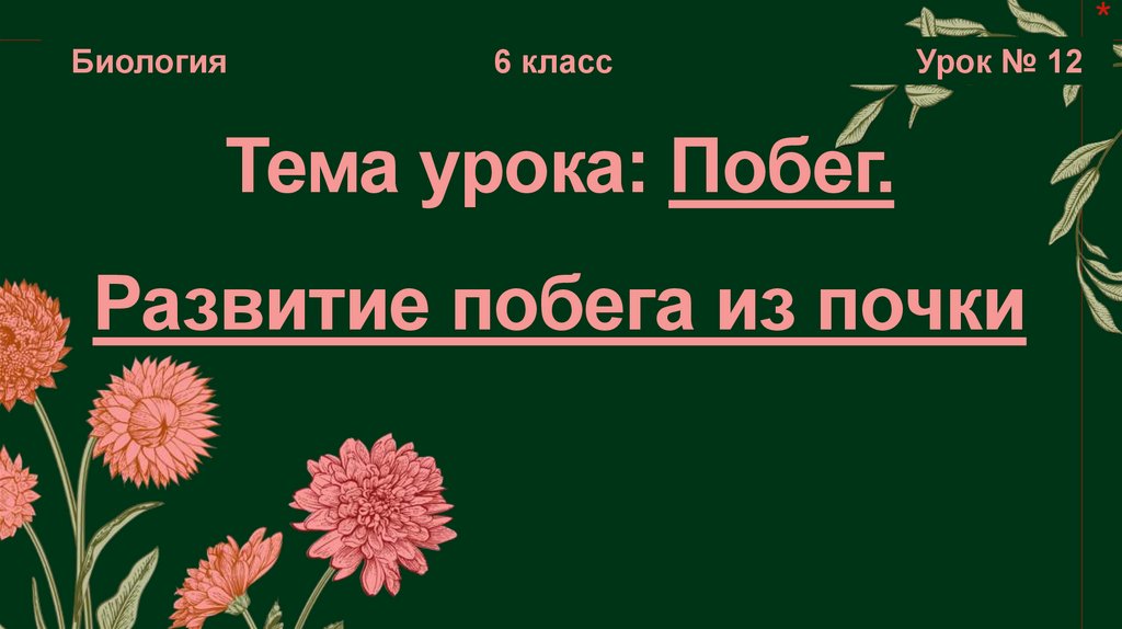 1. Тема урока: Побег. Развитие побега из почки