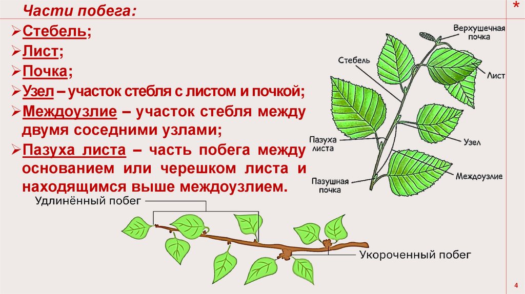 4. Ветвление побега (пазушные почки).