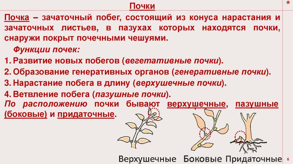 По расположению почки бывают верхушечные, пазушные