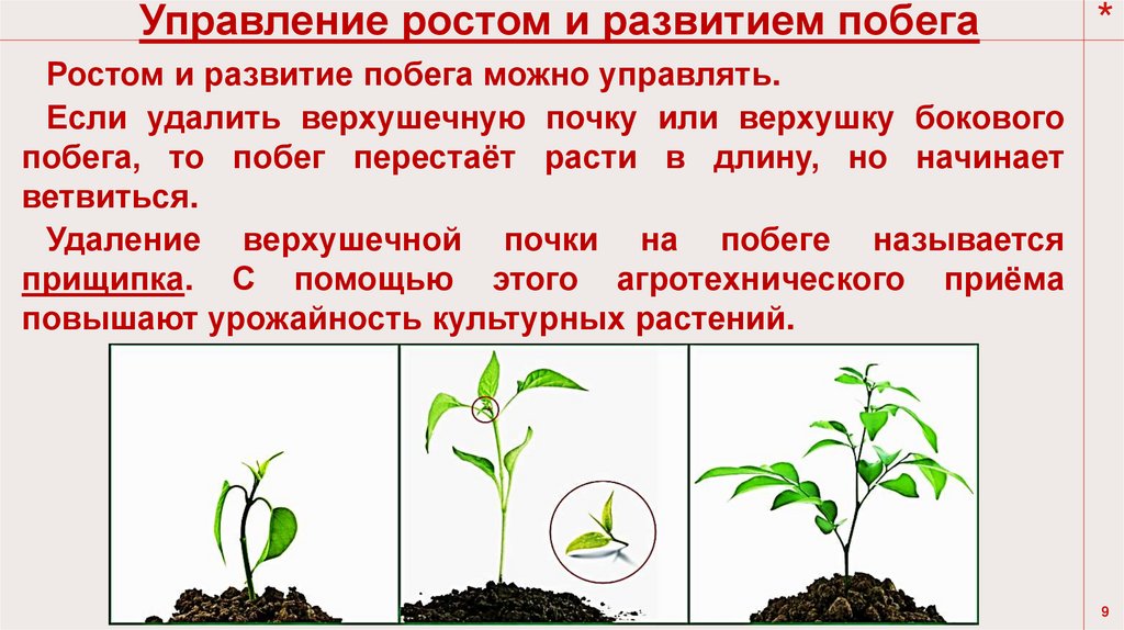 Ростом и развитие побега можно управлять.