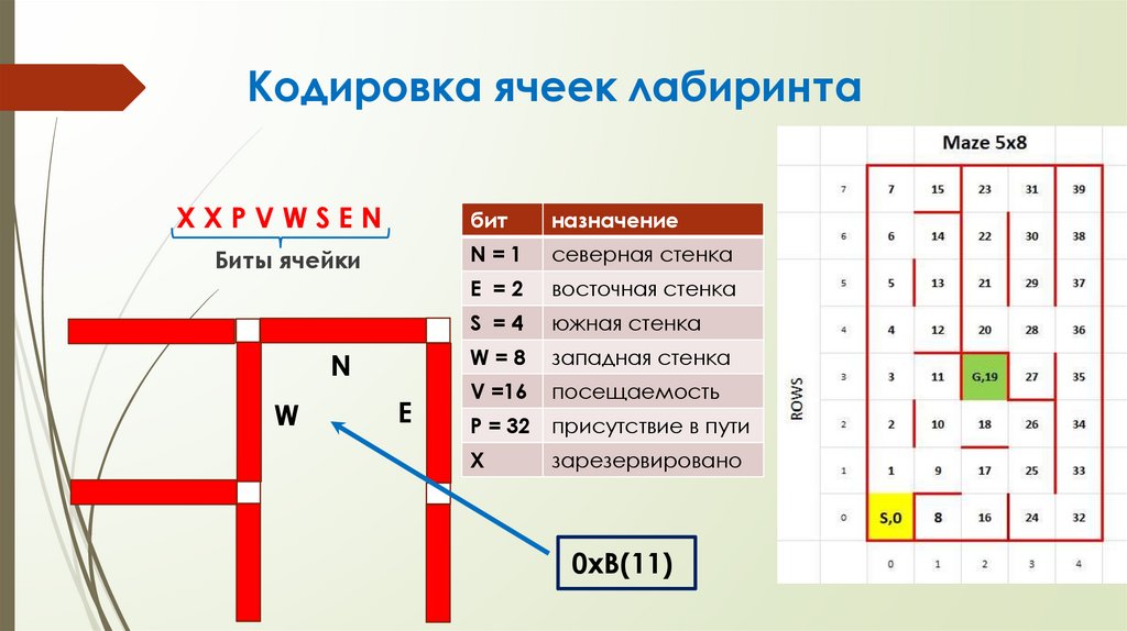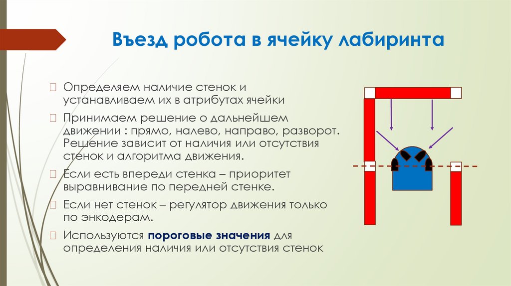 Въезд робота в ячейку лабиринтаОпределяем наличие стенок и