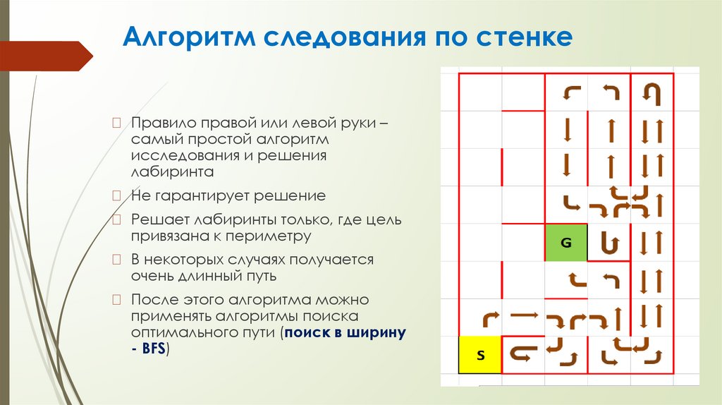 Алгоритм следования по стенкеПравило правой или левой руки –