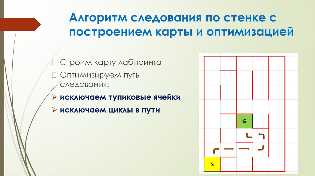 Алгоритм следования по стенке cпостроением карты и оптимизацией