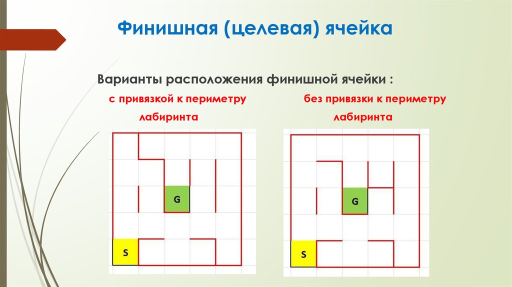 Финишная (целевая) ячейкаВарианты расположения финишной ячейки :