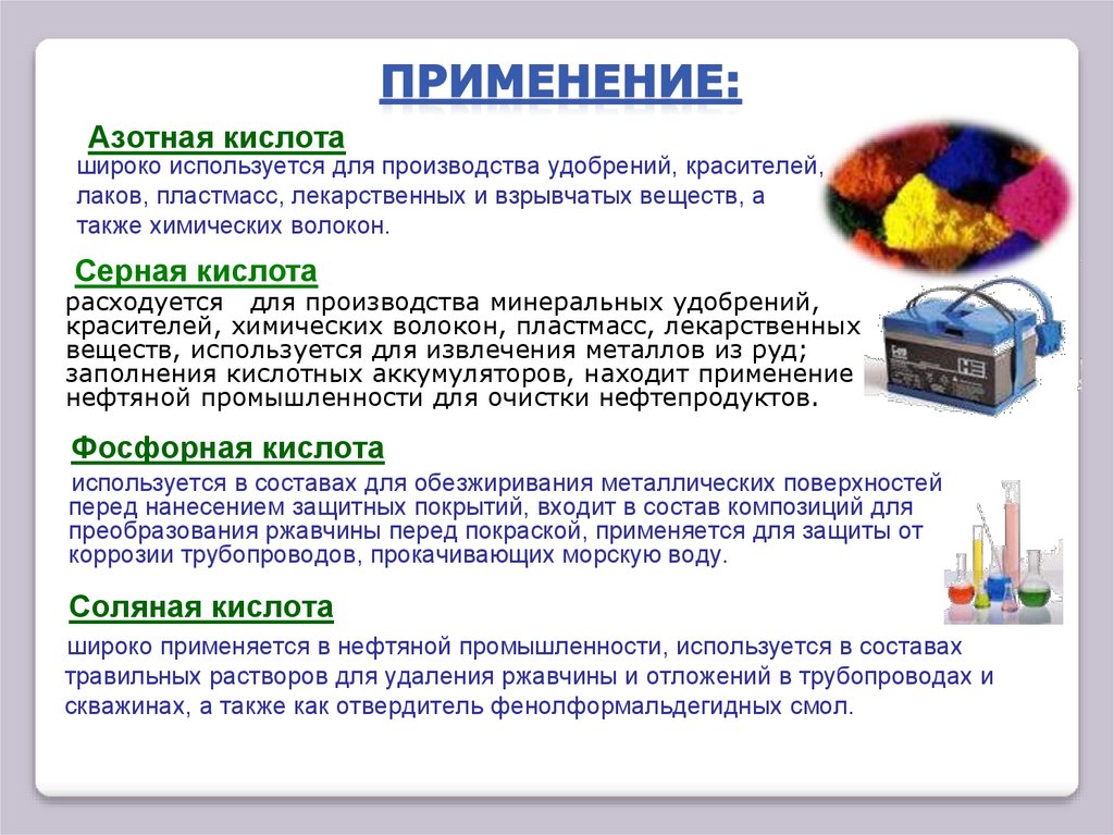 Азотная кислоташироко используется для производства удобрений, красителей,