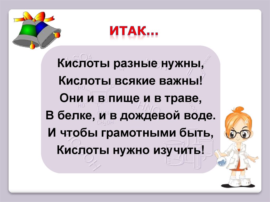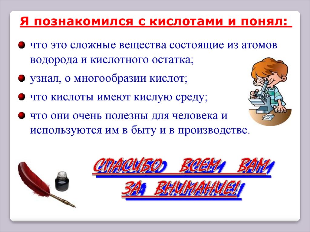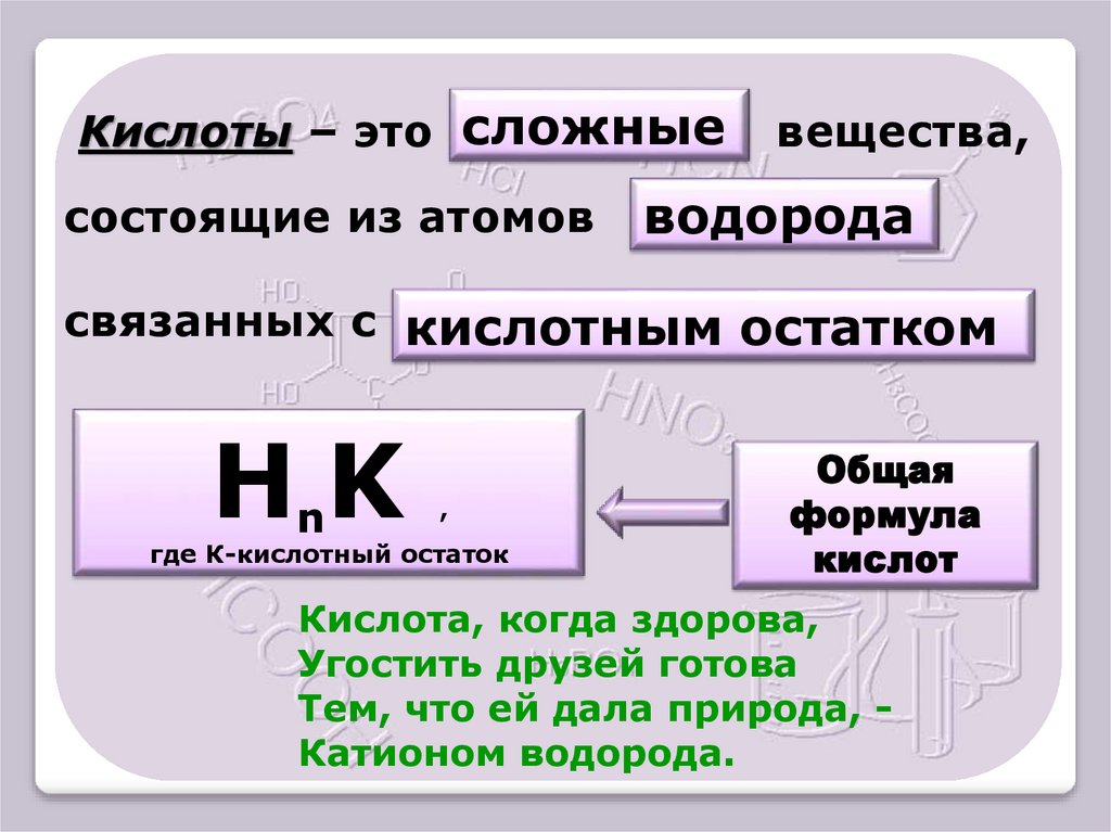 Я познакомился с кислотами и понял:что это сложные вещества состоящие из атомов