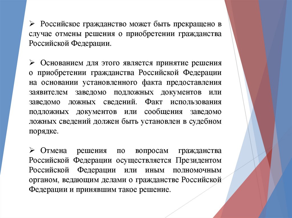 г) отмены решений по вопросам гражданства Российской
