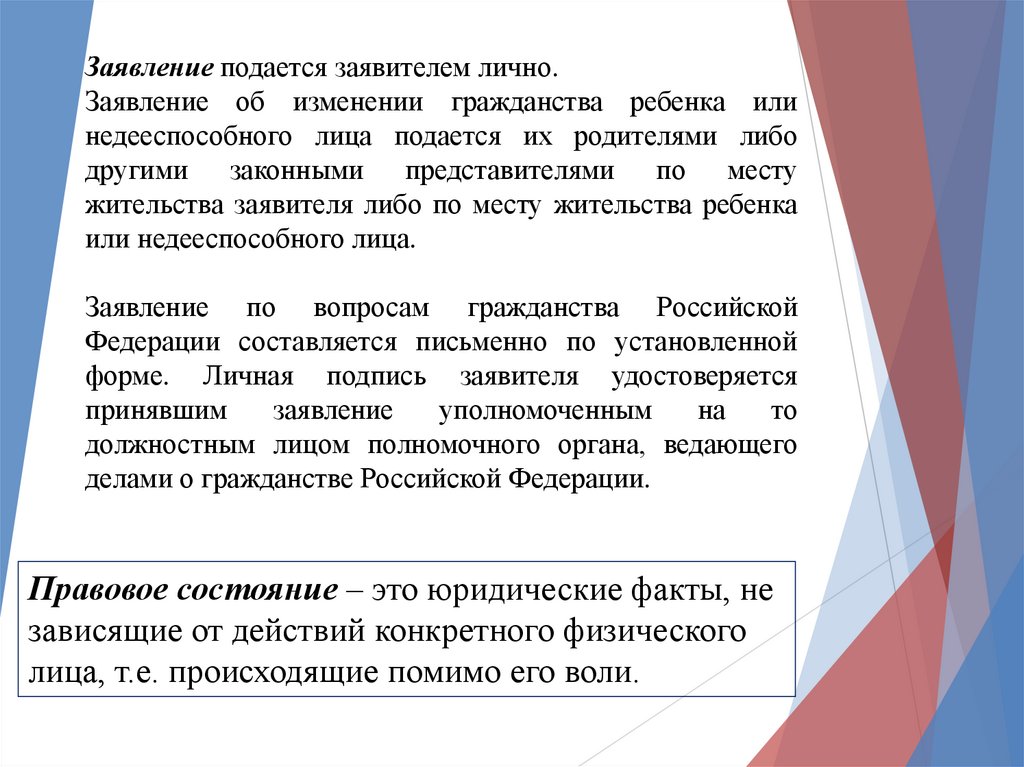 Заявление по вопросам гражданства РоссийскойФедерации подается по месту жительства заявителя: