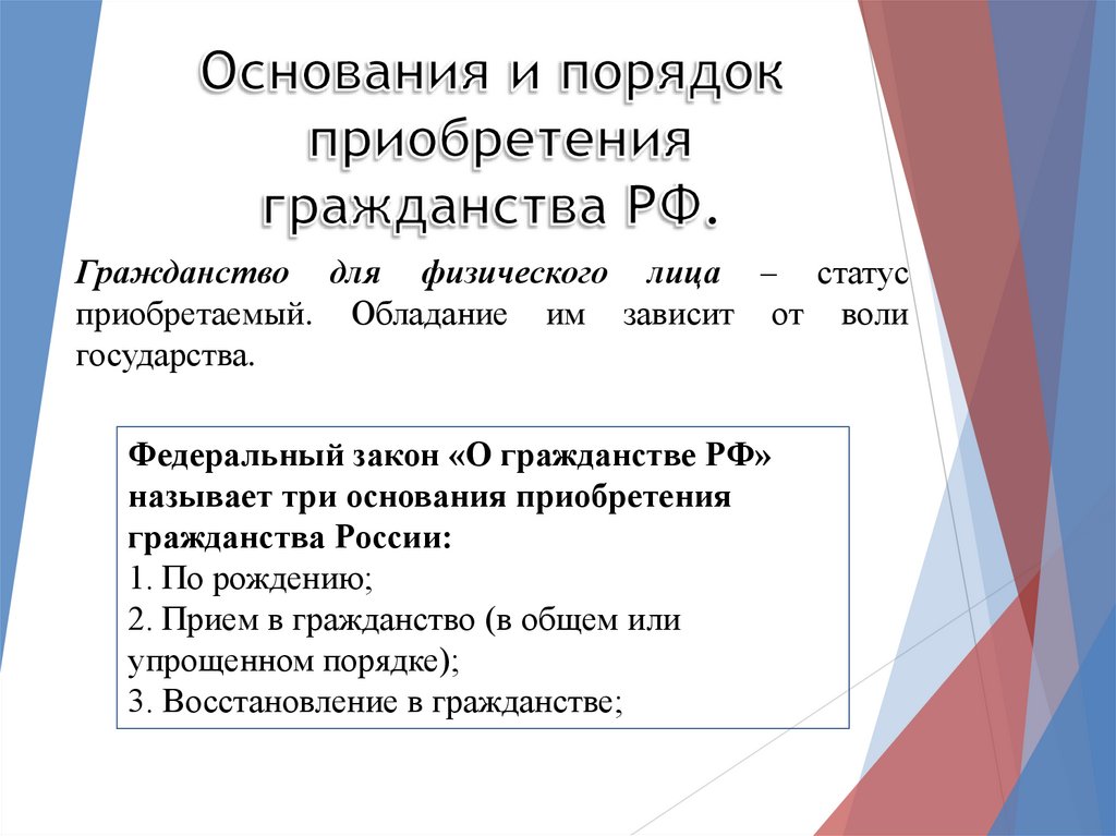 Гражданство для физического лица – статусприобретаемый. Обладание им зависит от воли