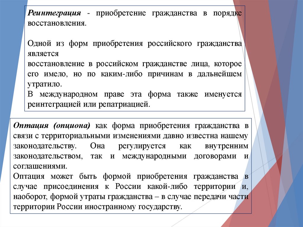 3. Восстановление в гражданстве;