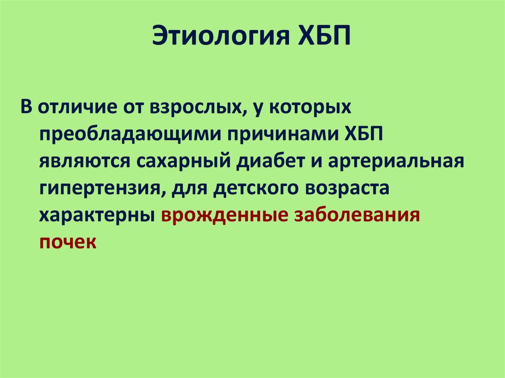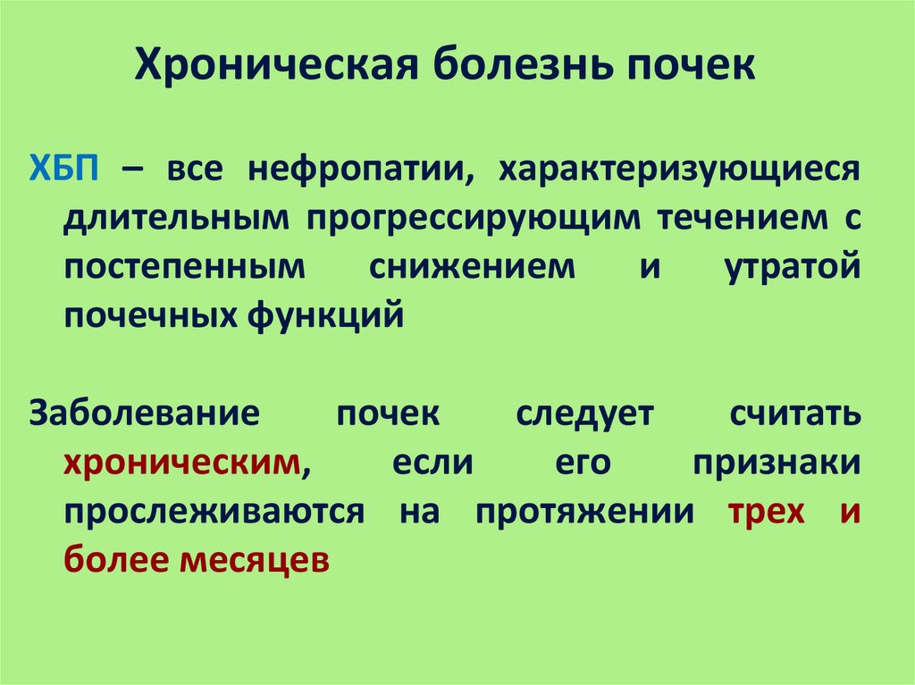 Хроническая болезнь почекХБП – все нефропатии, характеризующиеся
