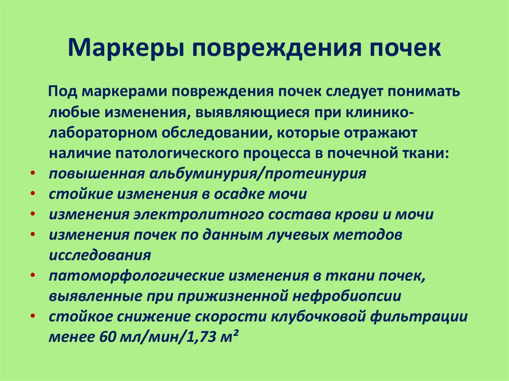 Маркеры повреждения почекПод маркерами повреждения почек следует понимать