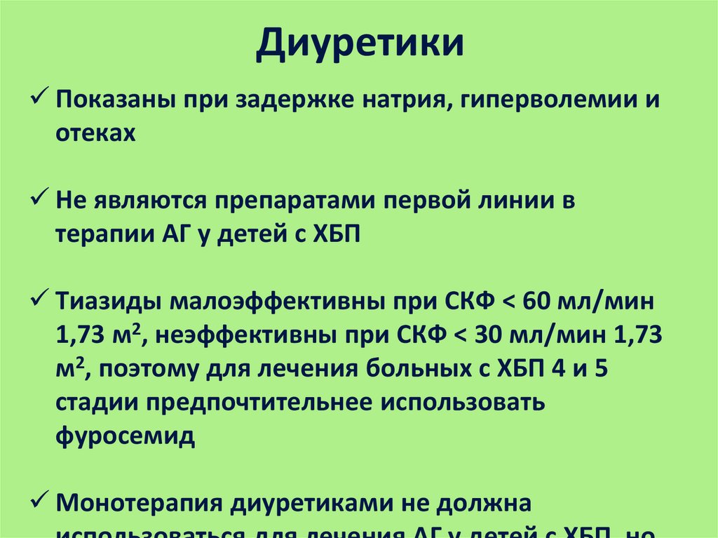 1,73 м2, неэффективны при СКФ < 30 мл/мин 1,73