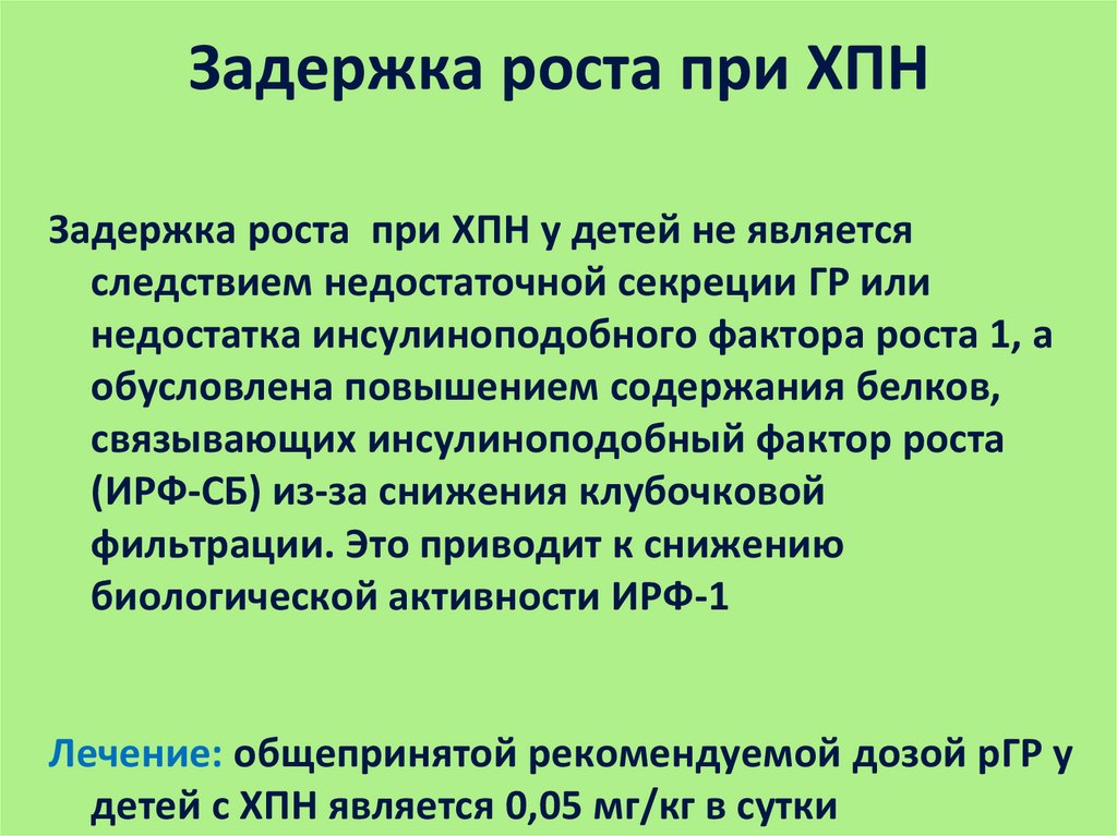 Задержка роста при ХПНЗадержка роста при ХПН у детей не является